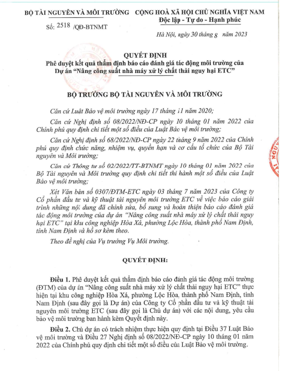 Tel: + 2286 288 288 / 364 6688 Email: info@ctymoitruongetc.com.vn