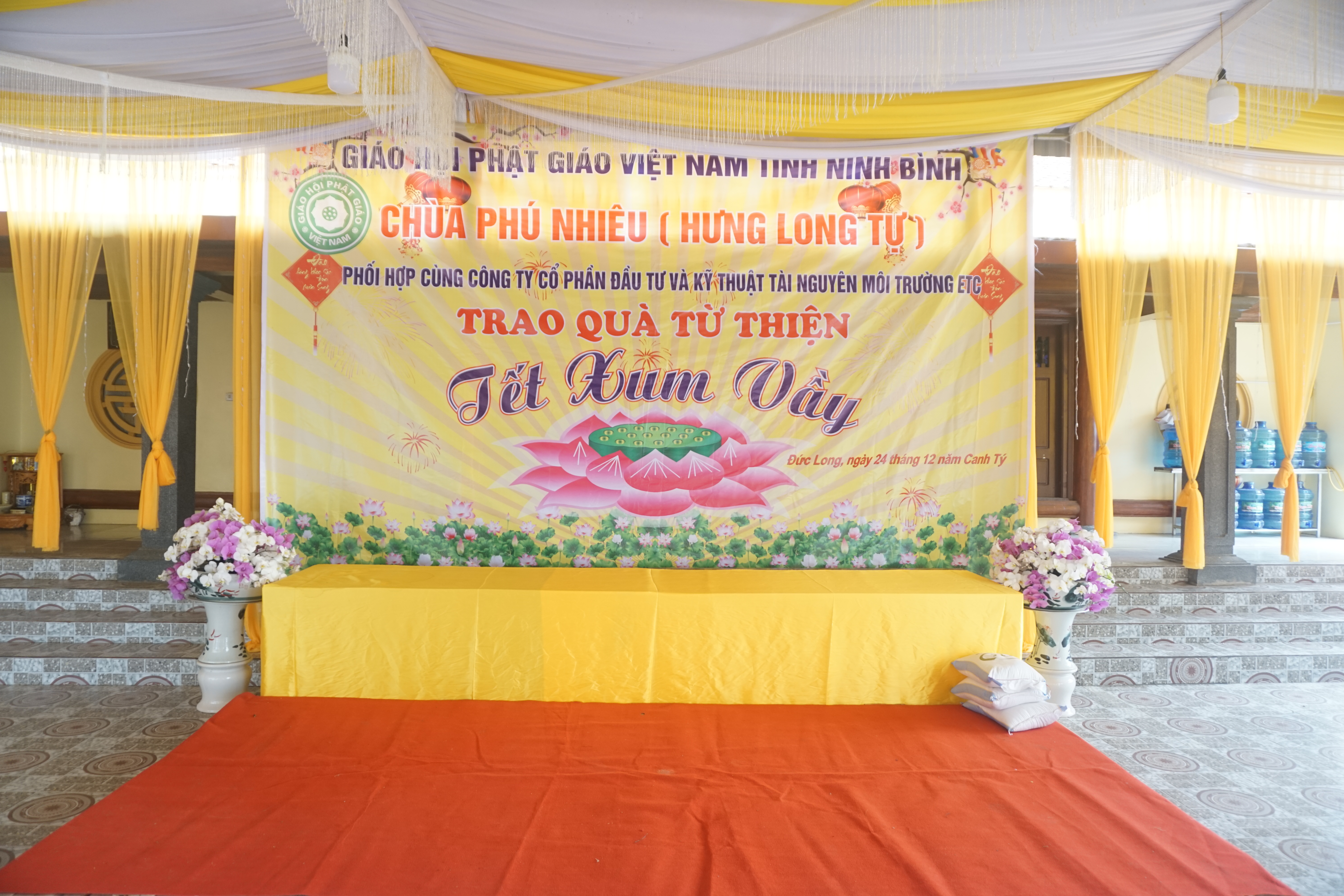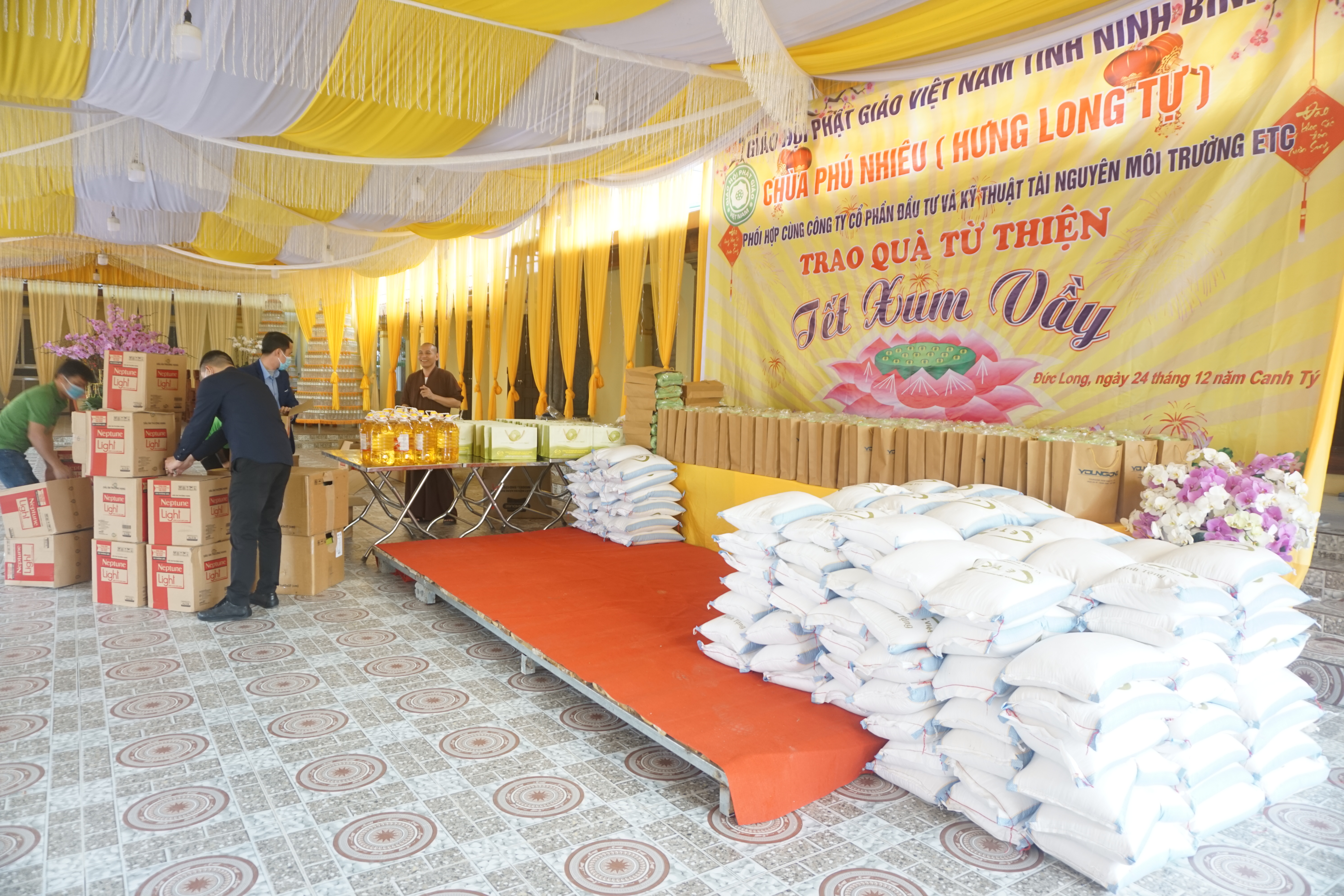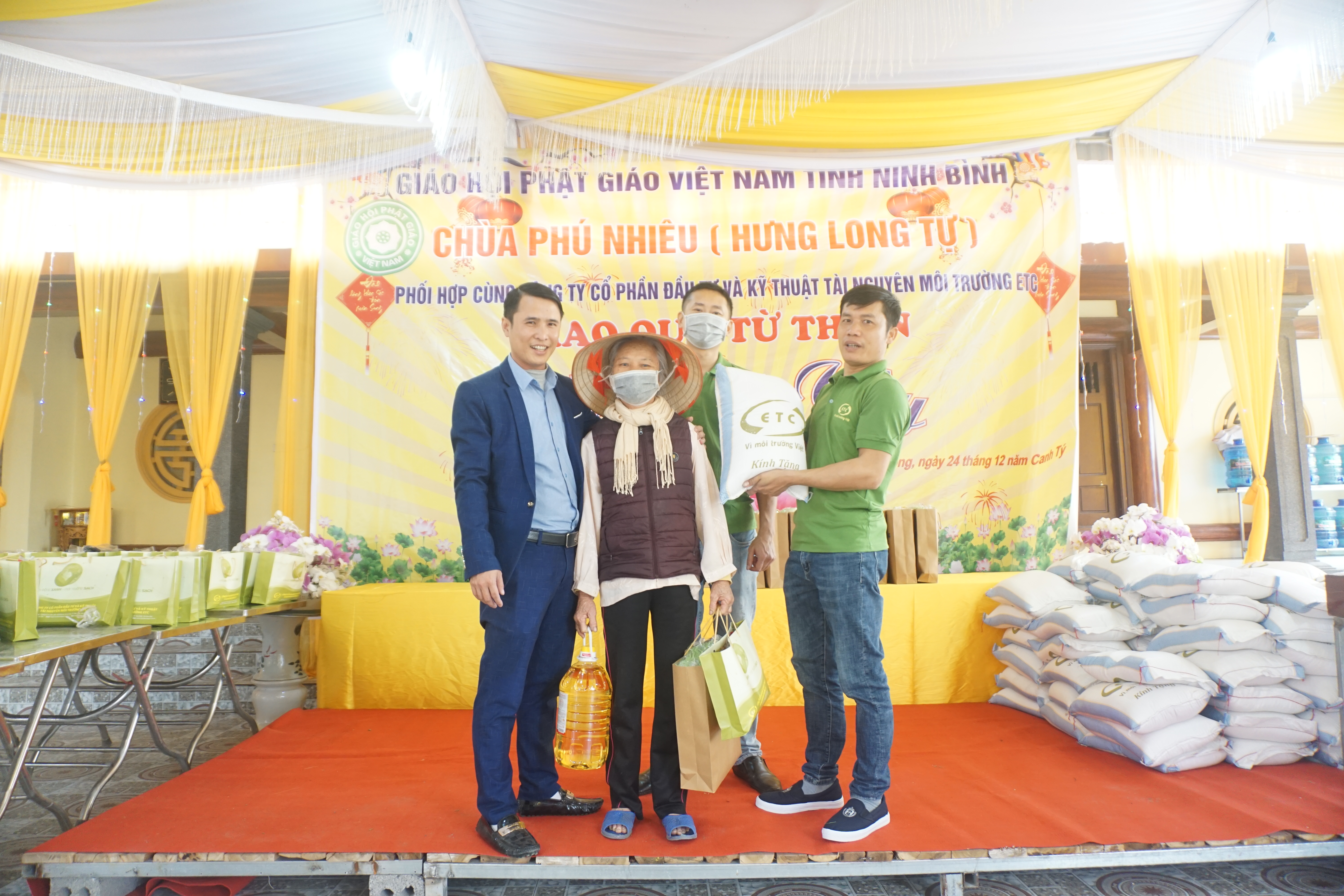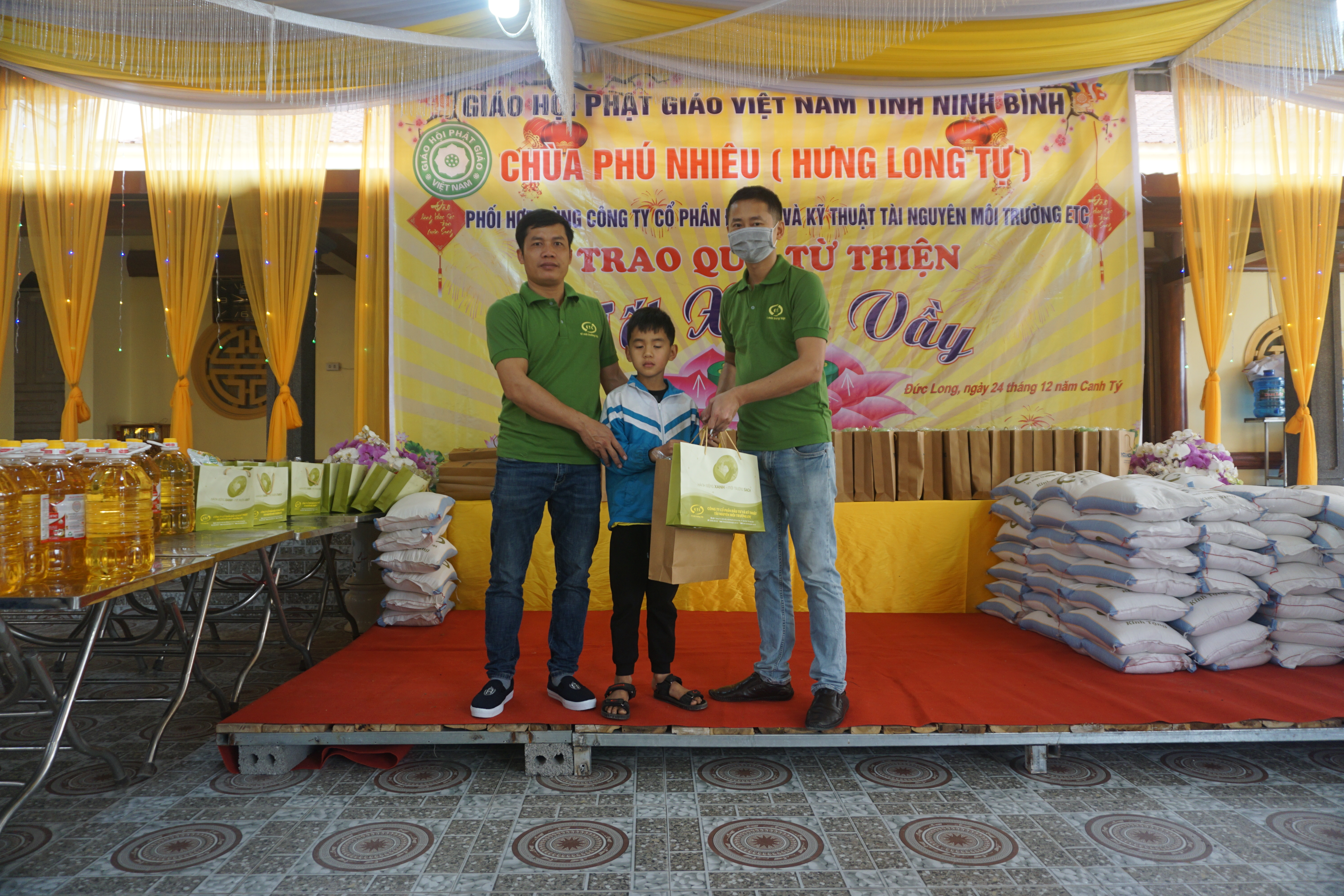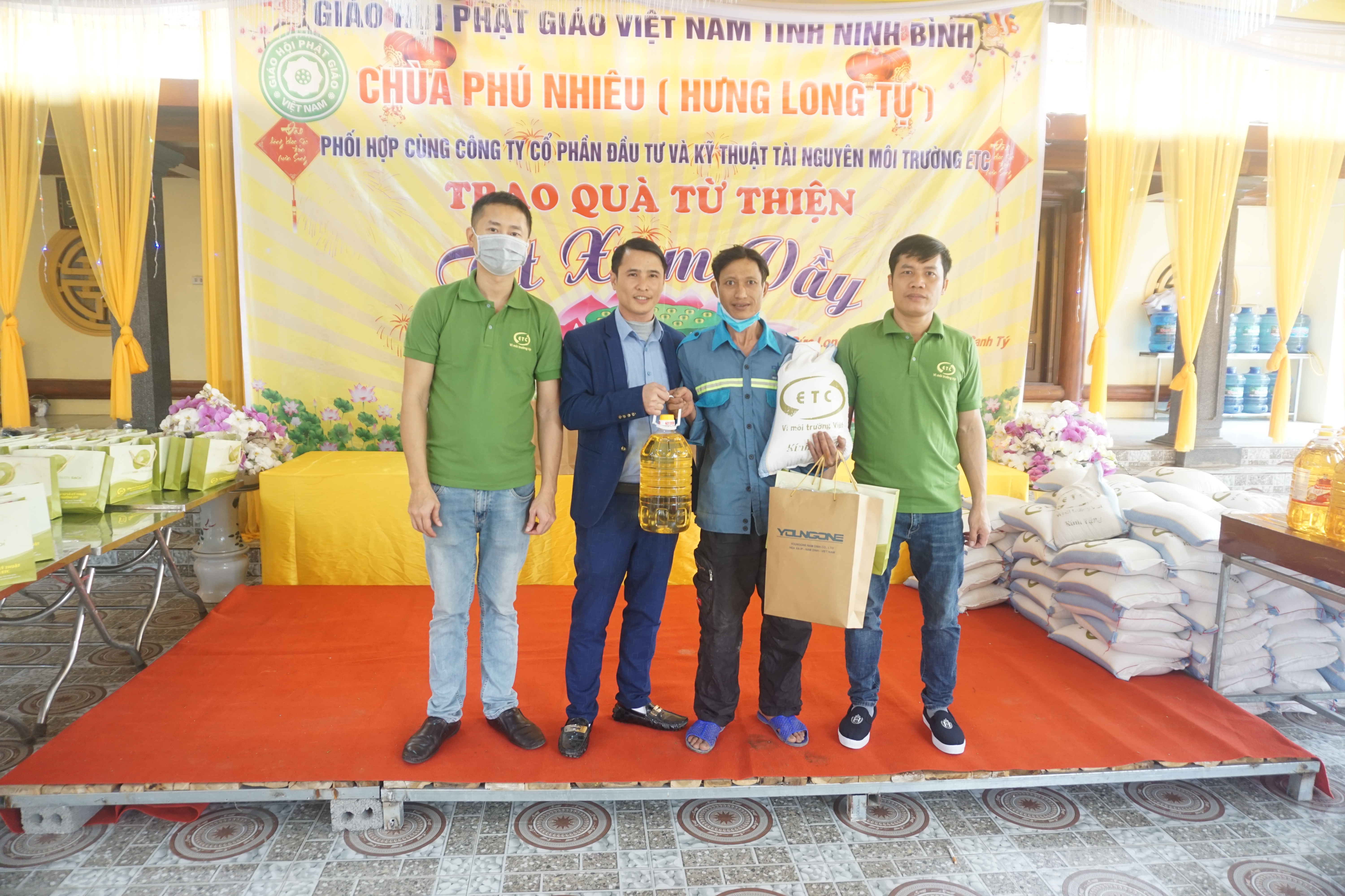 Công ty CP Đầu tư và kỹ thuật Tài nguyên Môi trường ETC kết hợp cùng chính quyền địa phương xã Đức Long, huyện Nho Quan, tỉnh Ninh Bình và chùa Phú Nhiêu (Hưng Long tự) trao phần quà tết cho nhân dân địa phương